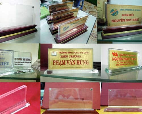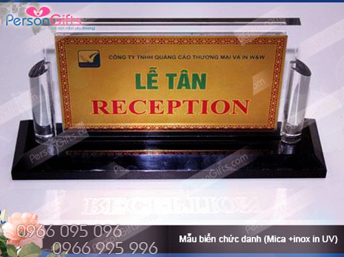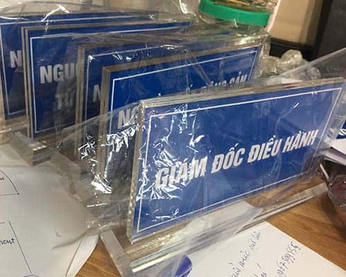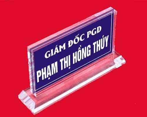 Bảng mica để bàn hay còn được gọi là biển chức danh để bàn mica, ngoài ra còn có rất nhiều loại cao cấp bằng đồng, inox, mạ vàng… nhưng thông dụng là mica vì vừa dẹp mà rẻ